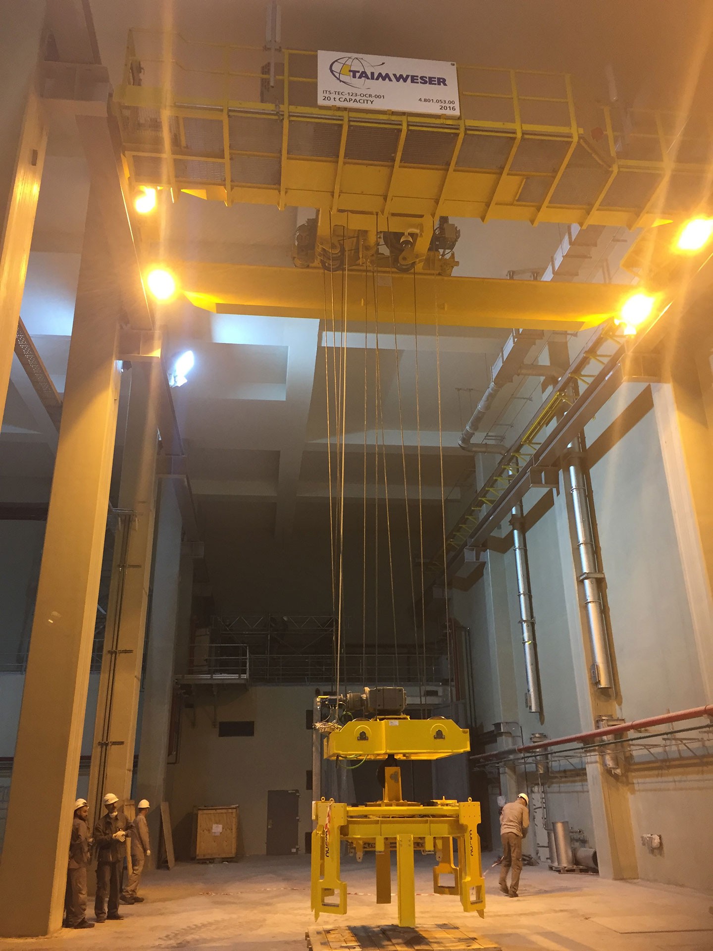 Novarka adjudicó a TAIM WESER el suministro de una grúa puente para el manejo de elementos estructurales y contenedores RAW, que son depositados en un área de almacenamiento de largo plazo de uno de los nuevos edificios del proyecto.
